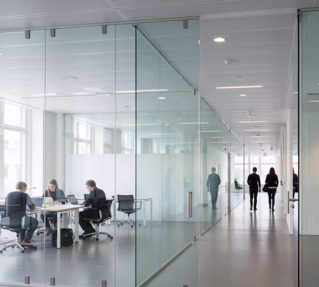 - Ljudisolering: Våra glasväggar kan anpassas för att minska ljudnivåer mellan olika utrymmen.